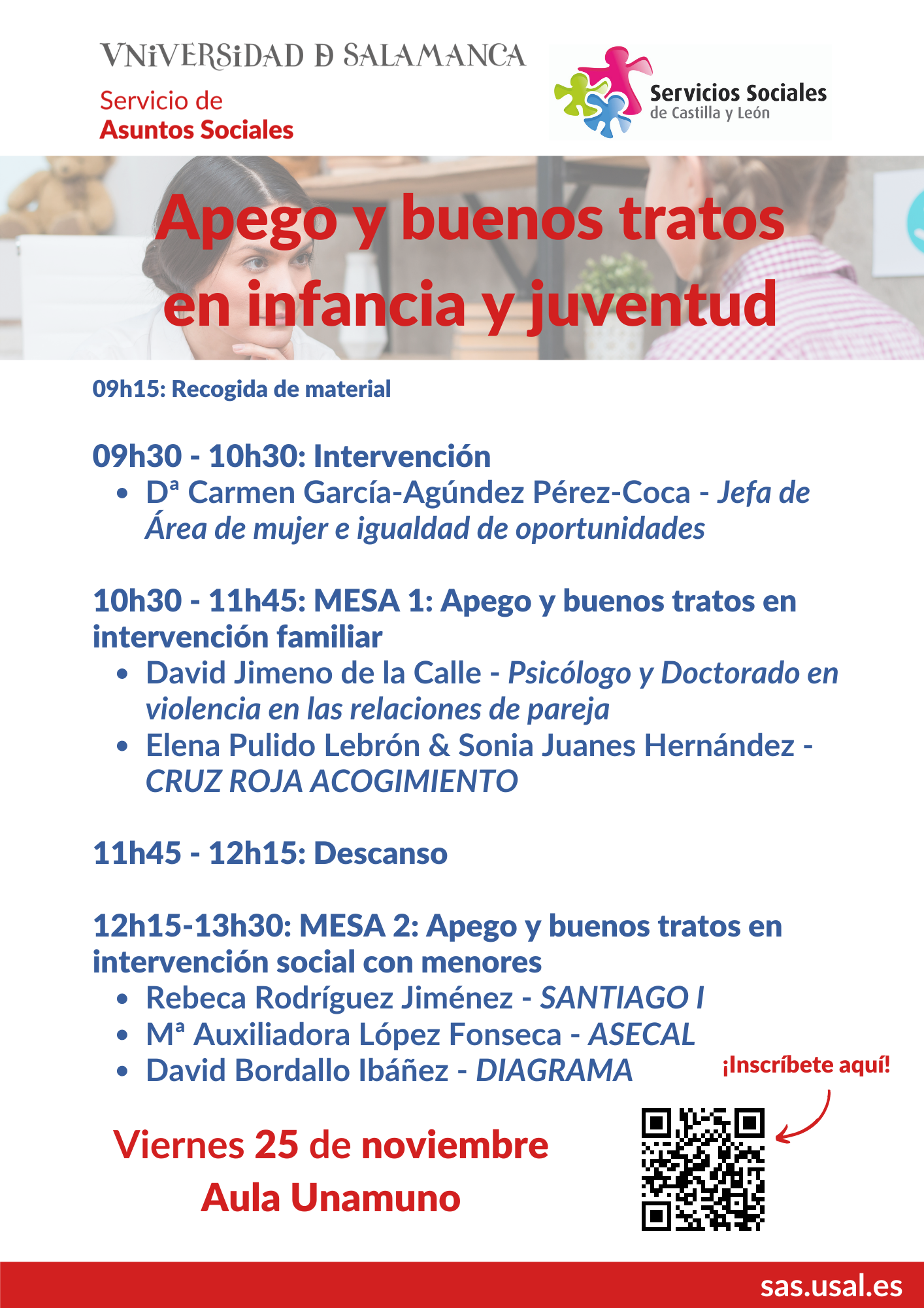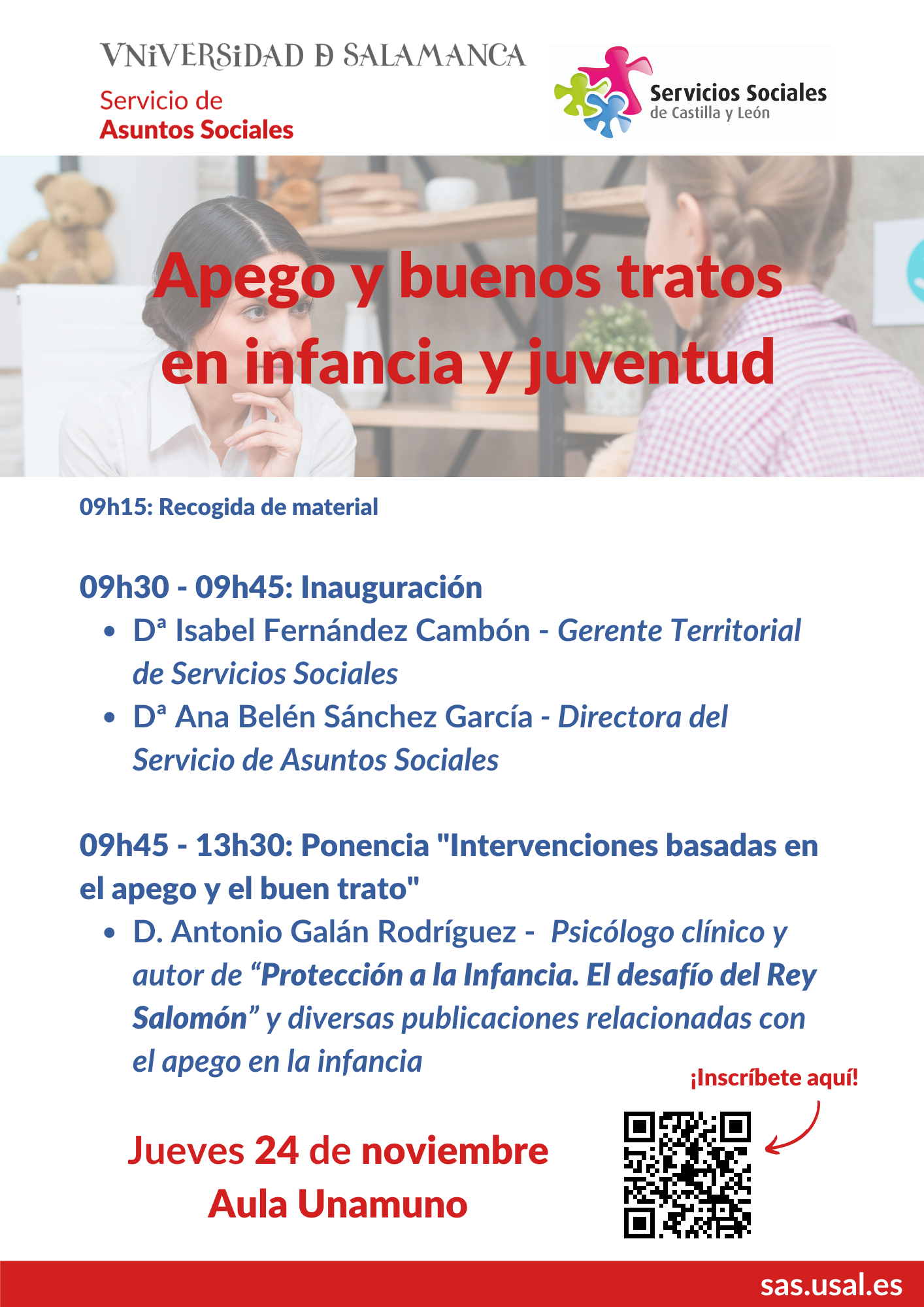 Los próximos días 24 y 25 de noviembre se desarrollarán en la Universidad unas jornadas sobre menores organizadas desde el Servicio de Asuntos Sociales junto a la Gerencia de Servicios Sociales de Castilla y León.